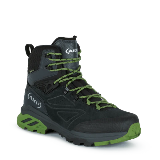 Moderna calzatura da trekking per escursioni giornaliere di media durata, con carichi leggeri su terreni misti. Sistema di allacciatura asimmetrico e tiranti in TPU alla base del gambetto per garantire un’ideale registrazione della chiusura. Il tallone in EVA doppia densità combinato con battistrada Tenuta Grip in mescola e disegno esclusivi AKU offre un’eccellente risposta in termini di ammortizzazione e stabilità su ogni tipo di terreno. Il corpo sottopiede – suola – battistrada è sviluppato con tecnologia esclusiva AKU Elica Natural Stride System per favorire l’efficienza biodinamica.