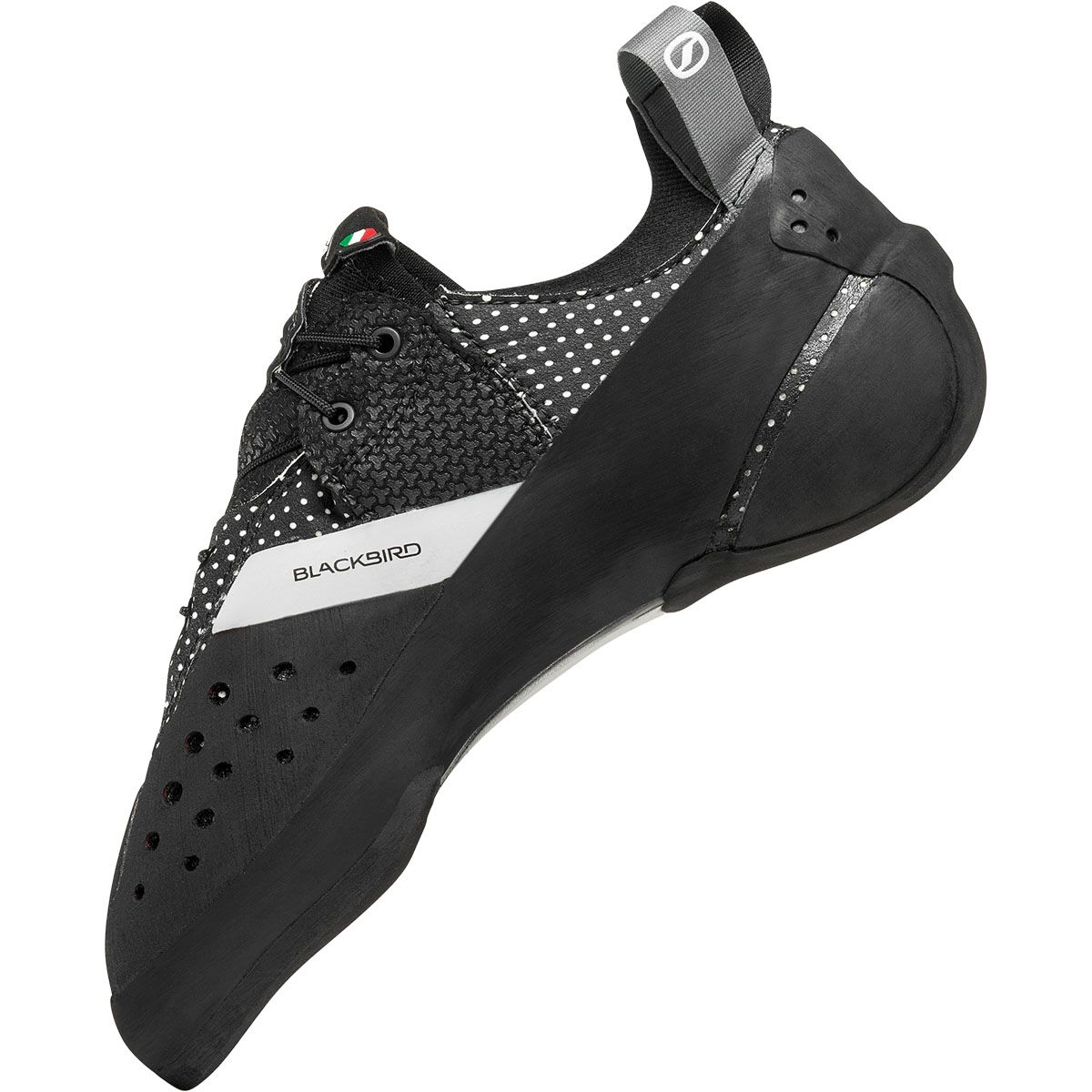 La Blackbird di SCARPA è una scarpetta da arrampicata progettata per ridefinire gli standard di precisione e supporto tecnico sui micro-appoggi tipici dell’arrampicata su roccia più impegnativa. Sviluppata in sei anni di ricerca insieme alla leggenda Heinz Mariacher, questa calzatura introduce l’innovativa intersuola Carbon-Enhanced 3D Molded Pebax® realizzata in Pebax® Rnew rinforzato con fibra di carbonio che permette una distribuzione efficiente della forza sull’avampiede garantendo una stabilità senza precedenti senza sacrificare la sensibilità. Grazie a questa struttura avanzata la scarpetta supera la classica distinzione tra modelli rigidi e morbidi offrendo un supporto intelligente che riduce l’affaticamento del piede durante le sessioni prolungate o sulle vie lunghe multipitch. La tomaia in microfibra a doppio strato con fodera anteriore in Alcantara® assicura un comfort superiore che permette un downsizing meno estremo rispetto ai modelli da competizione tradizionali mantenendo comunque un controllo assoluto. Il sistema di chiusura full wrapping combinato con una tensionatura altamente avvolgente e uno stabilizzatore laterale interno crea una connessione diretta tra scalatore e parete rendendola perfetta per pareti verticali tecniche e boulder che richiedono potenza. La suola in gomma Vibram® XS Grip 2 offre il massimo attrito su ogni tipo di superficie mentre il tallone con costruzione IHC ad alta precisione e imbottitura in Alcantara® sul tendine d’Achille migliora drasticamente il comfort e la performance nei tallonaggi più complessi.