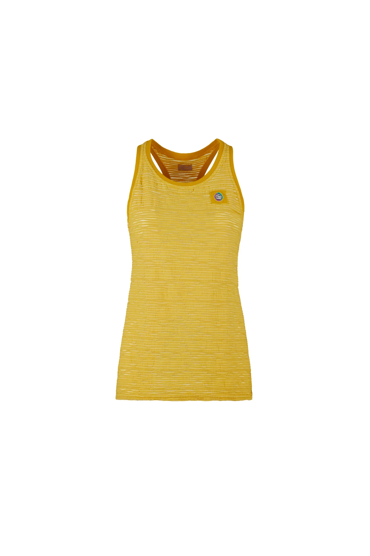 Questa canotta è realizzata in un leggero tessuto jersey jacquard, con una toppa sul lato cuore. La sua vestibilità aderente e la lavorazione di qualità la rendono una scelta di alta qualità per qualsiasi guardaroba. Progettata e realizzata in Italia per il massimo dello stile e della maestria artigianale.