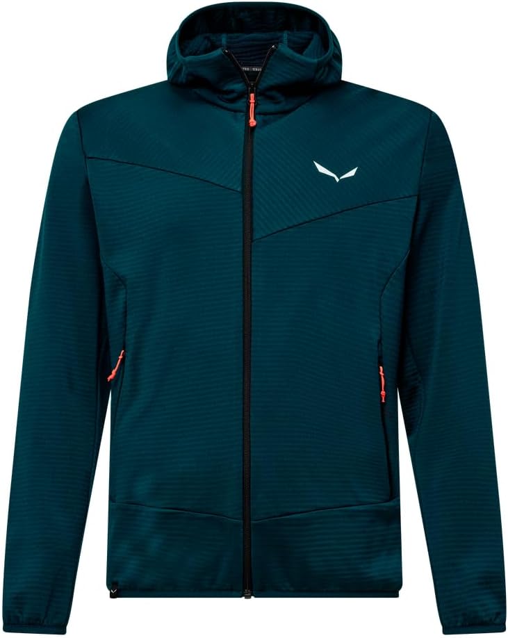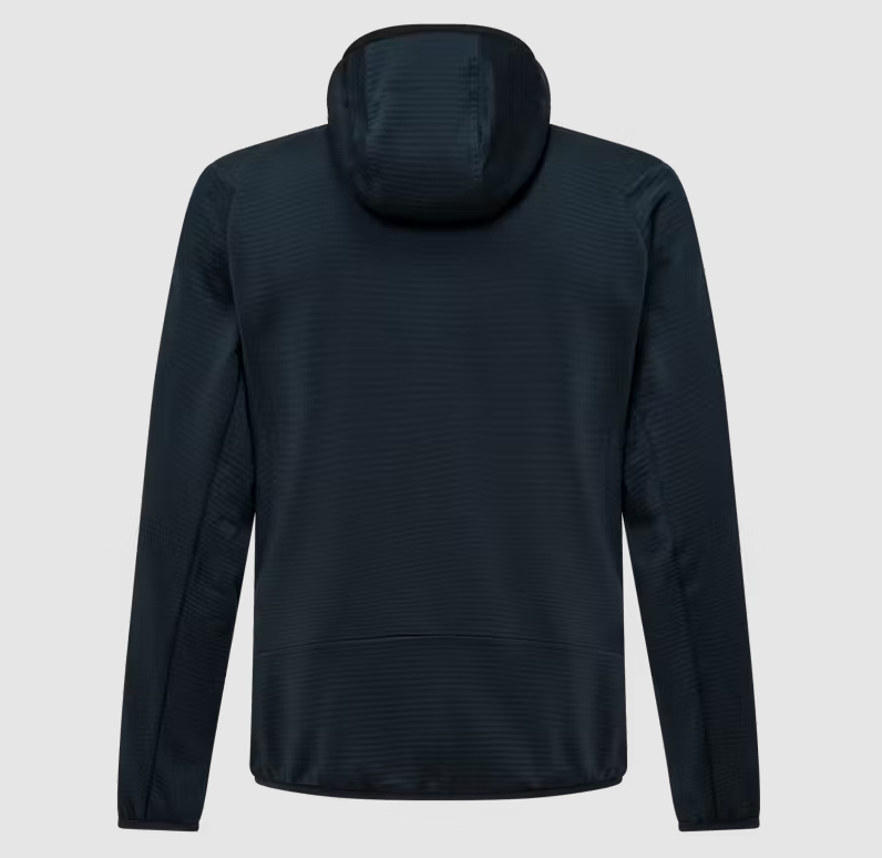 Questo strato intermedio versatile è progettato per garantire una buona vestibilità anche sotto un guscio esterno. È dotato di due tasche laterali con cerniera, polsini e orli elasticizzati, e di un cappuccio caldo per proteggere dal freddo.
